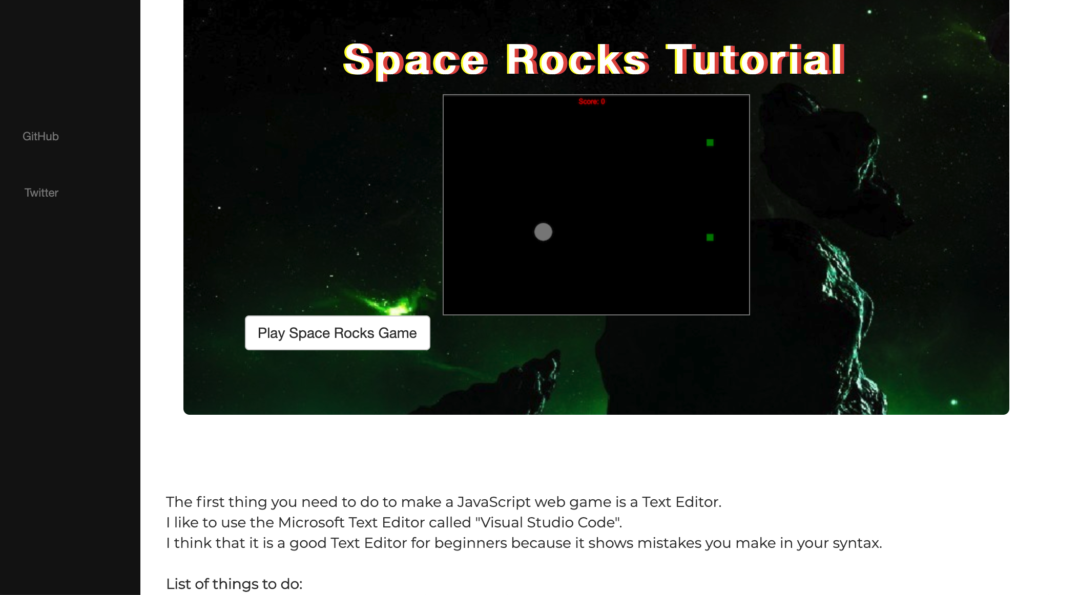 This portfolio includes an original JavaScript arcade Video Game that I made, and a tutorial on how I made it. Current projects that I am working on can be seen in my Github.